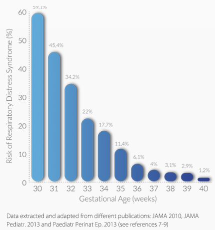En estas y otras circunstancias, la finalización del embarazo puede ser una opción razonable, aunque no absoluta, de evitar peligro para la madre o el feto. Conocer el riesgo de Morbilidad Respiratoria Neonatal puede constituir un dato crítico en el proceso de decisión, ya sea para confirmar o posponer el parto.